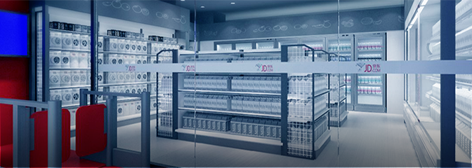 通过京东AI技术改造冰柜,实现极简购物体验:扫码开门、拿取商品、关门自动结算。