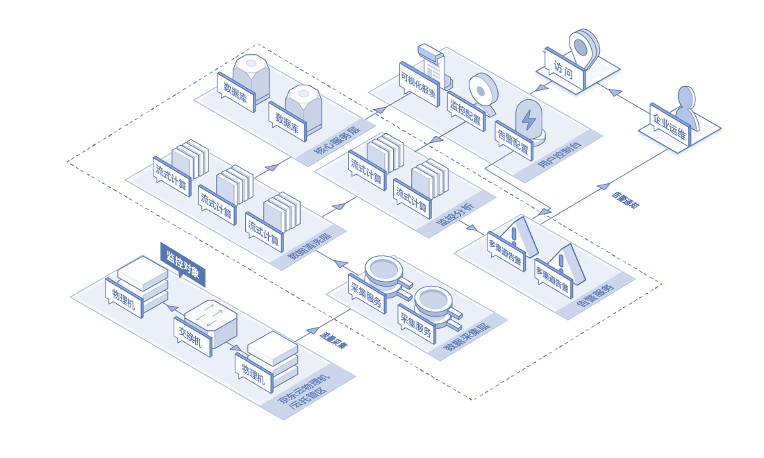 基于客户目前的资产体量,以及未来发展与规划,对资产信息进行收集、分析、搜索、挖掘。京东智联云为客户提供资产全生命周期的管理,使资产的使用率提升、闲置率下降,储存安全无忧。